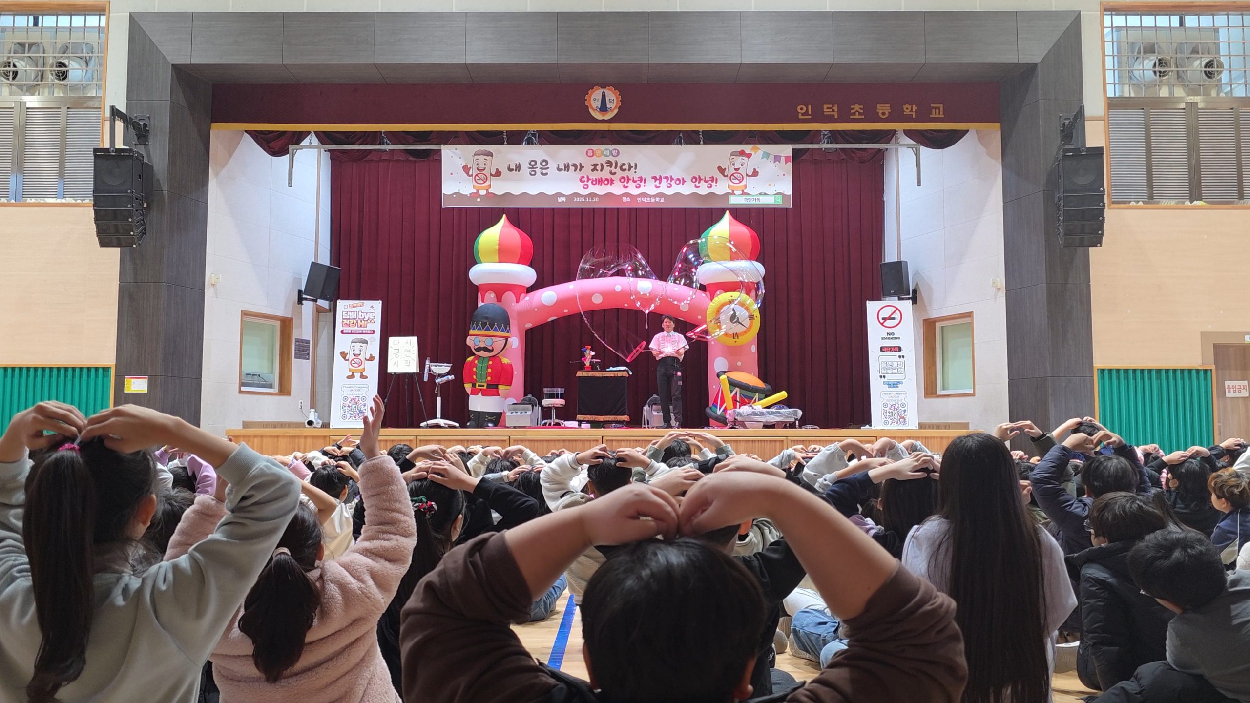 흡연예방교육내용이 담긴 비눗방울 공연! 비눗방울 콘텐츠로 아이들의 흥미와 교육을 한꺼번에 잡은 프로그램 참여 할 수 있고 마술적 효과로 전달력은 두 배! 마임 연기로 표현하고 비눗방울로 시선을 사로잡아 빠져드는 내용에
