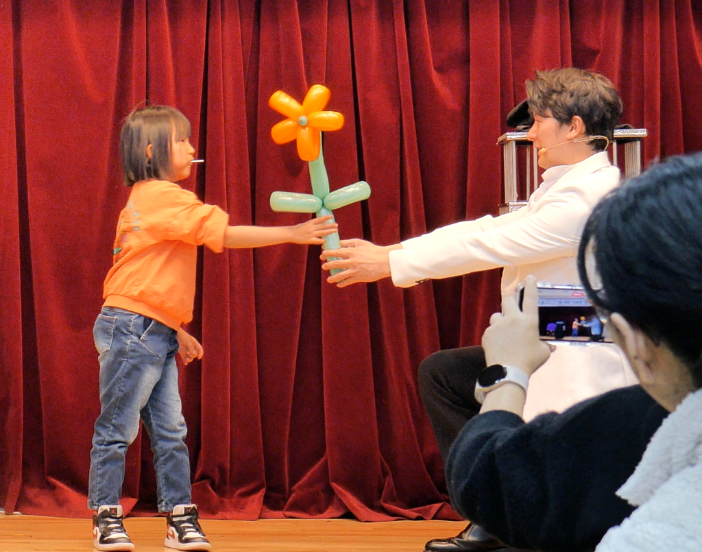 풍선으로 관객과 소통하고 아이들이 정말 좋아하는